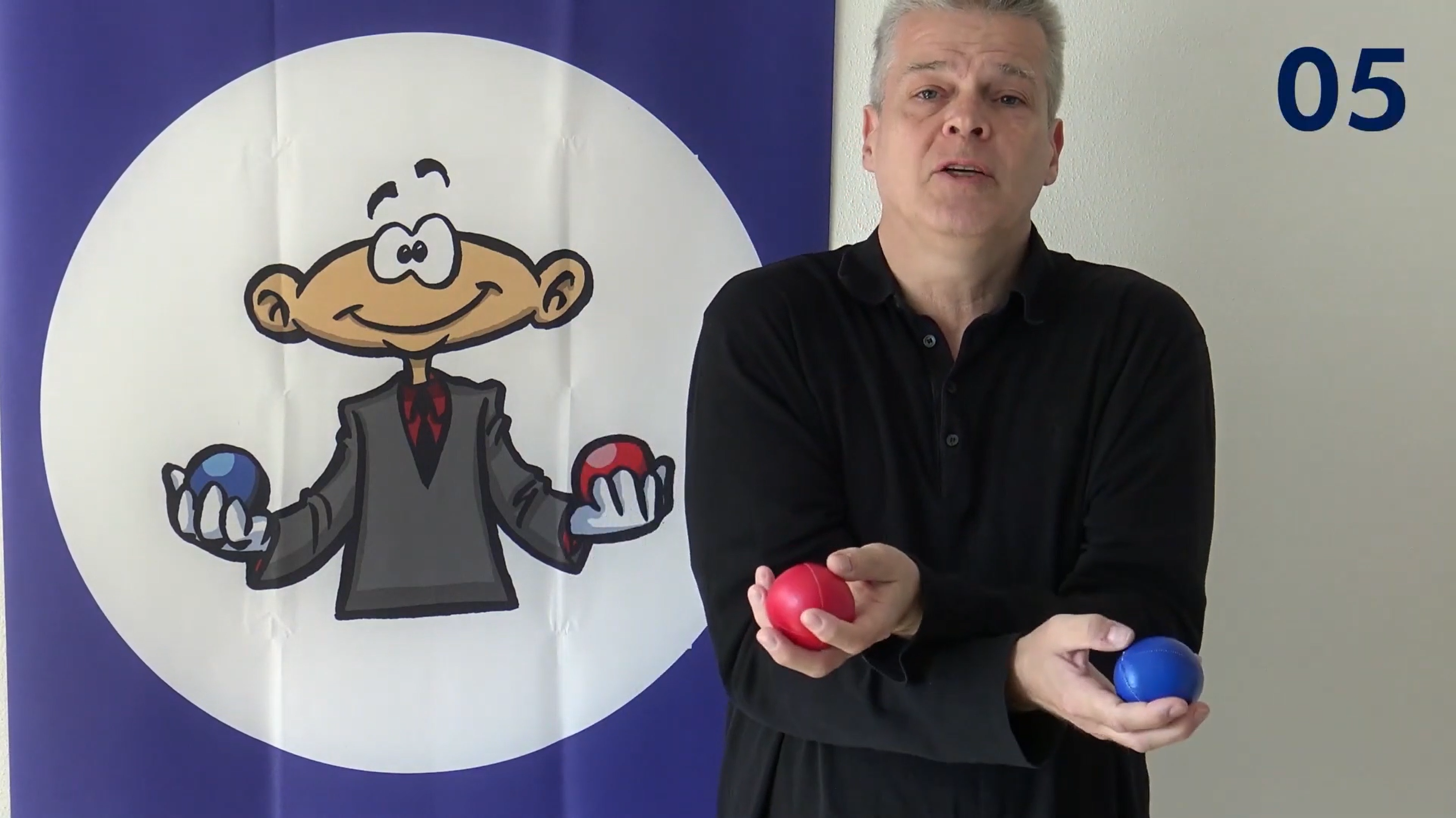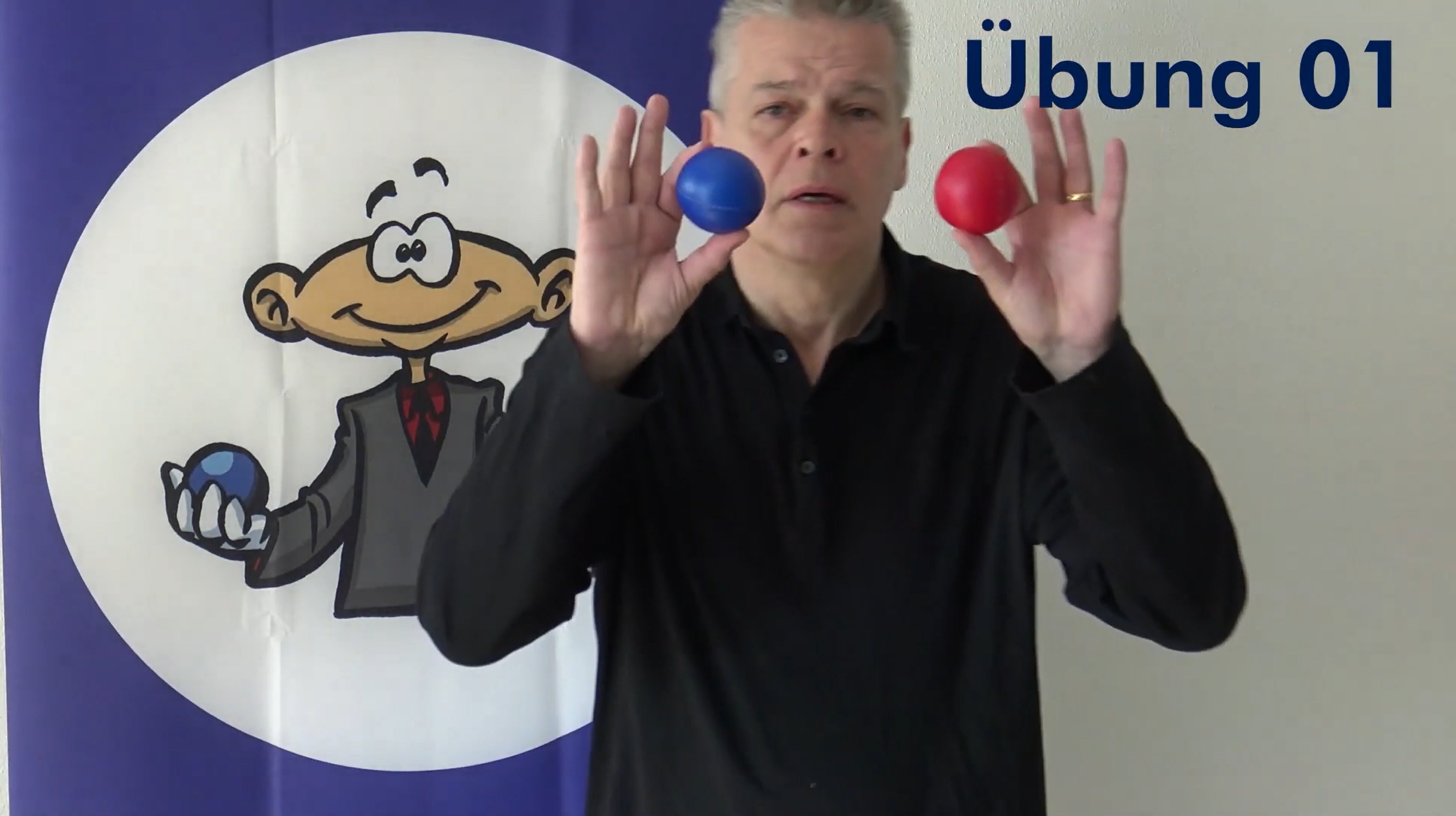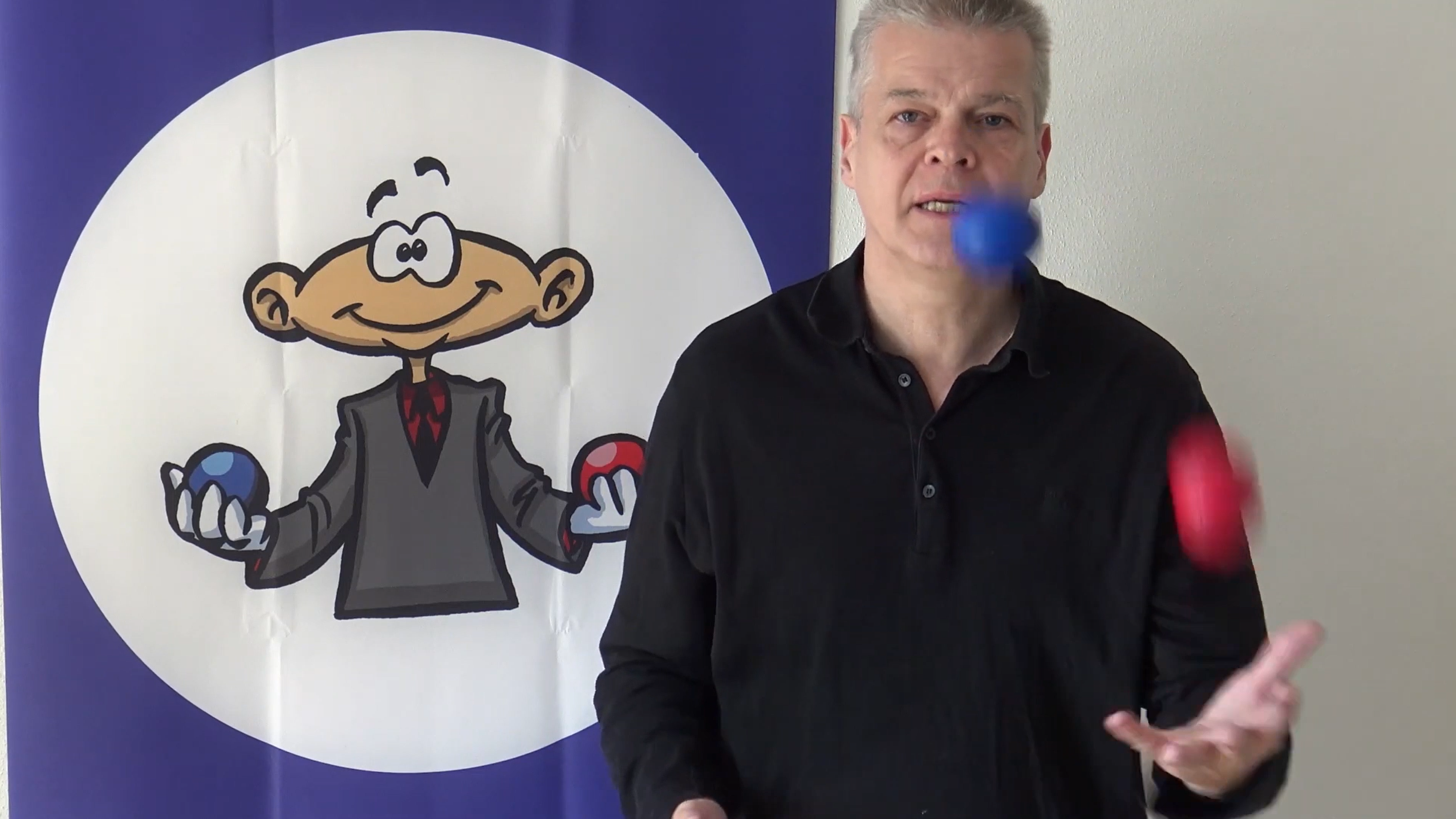 Nun kommen wir zum eigentlichen Jonglieren. Zuerst mit "nur" zwei Bällen, dann mit dreien.