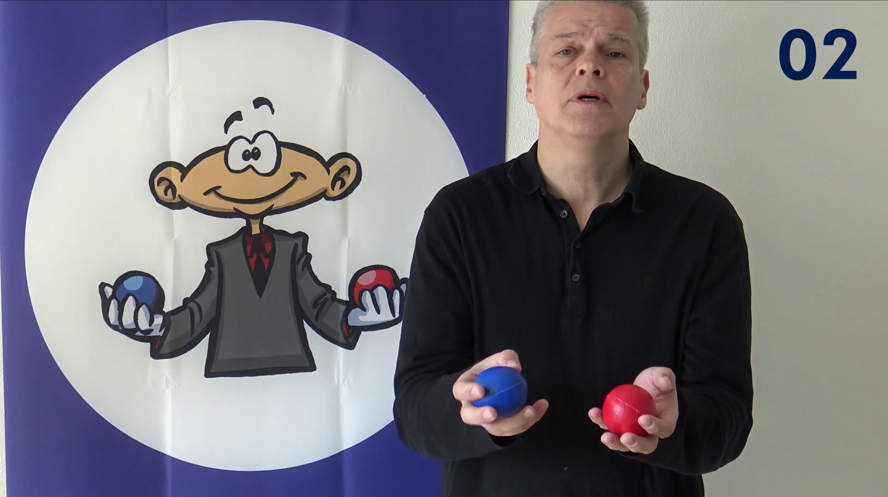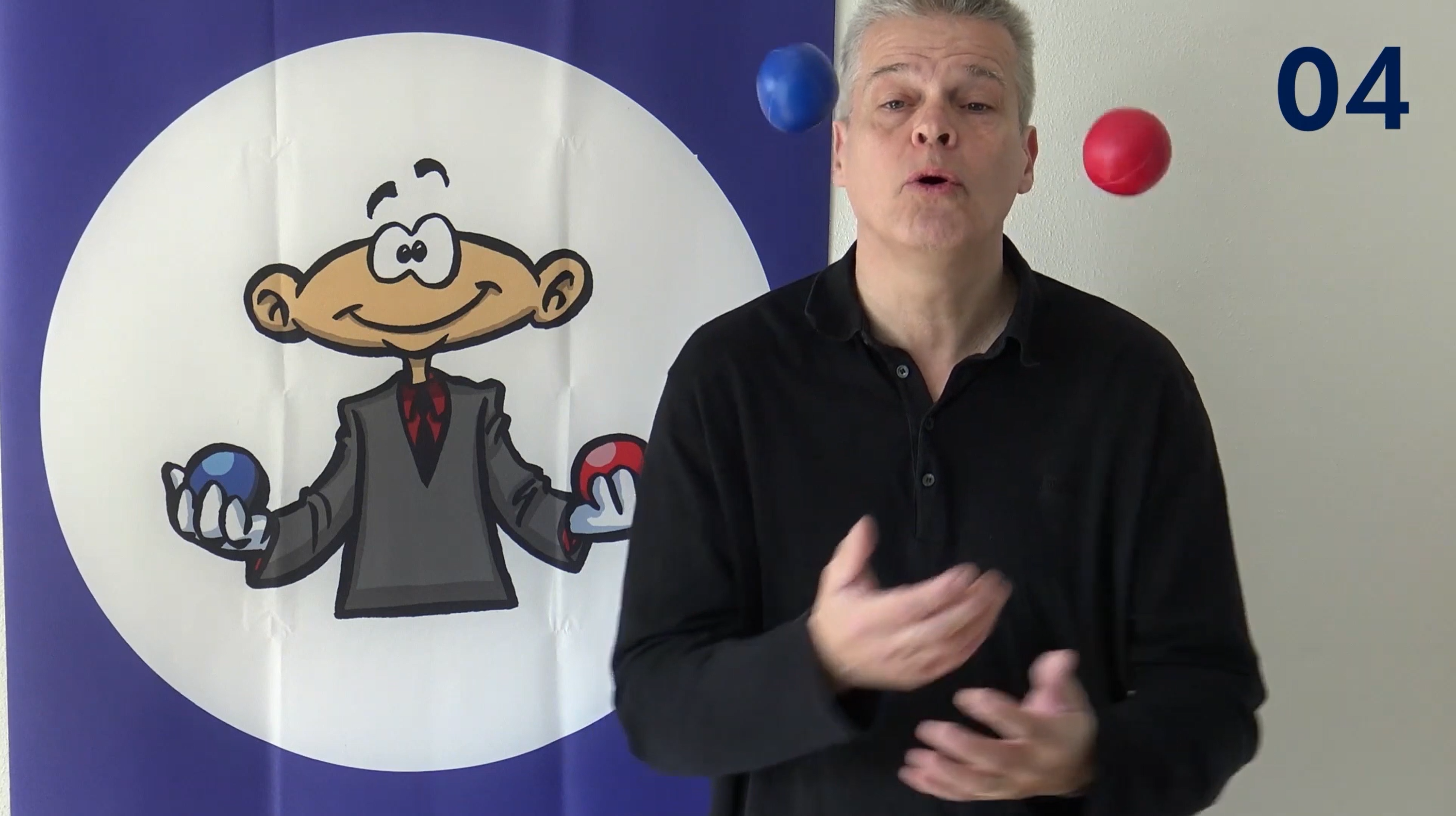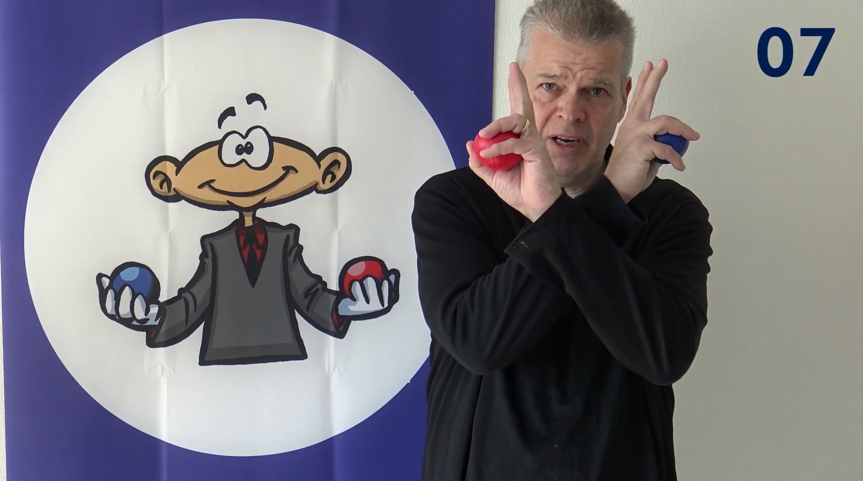 Nun kommen wir zum eigentlichen Jonglieren. Zuerst mit "nur" zwei Bällen, dann mit dreien.